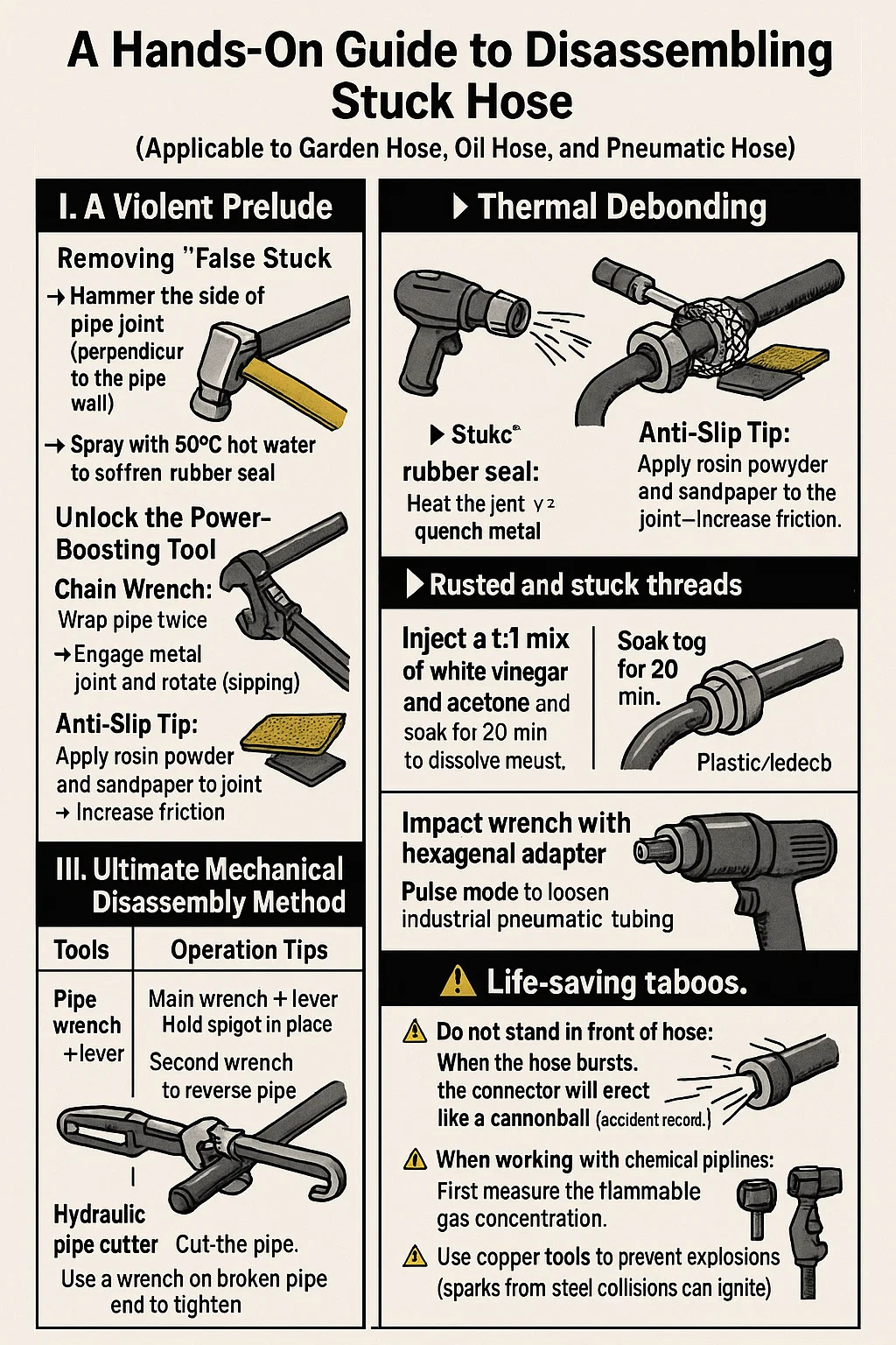 یک راهنمای دستی برای جدا کردن شیلنگ گیر کرده