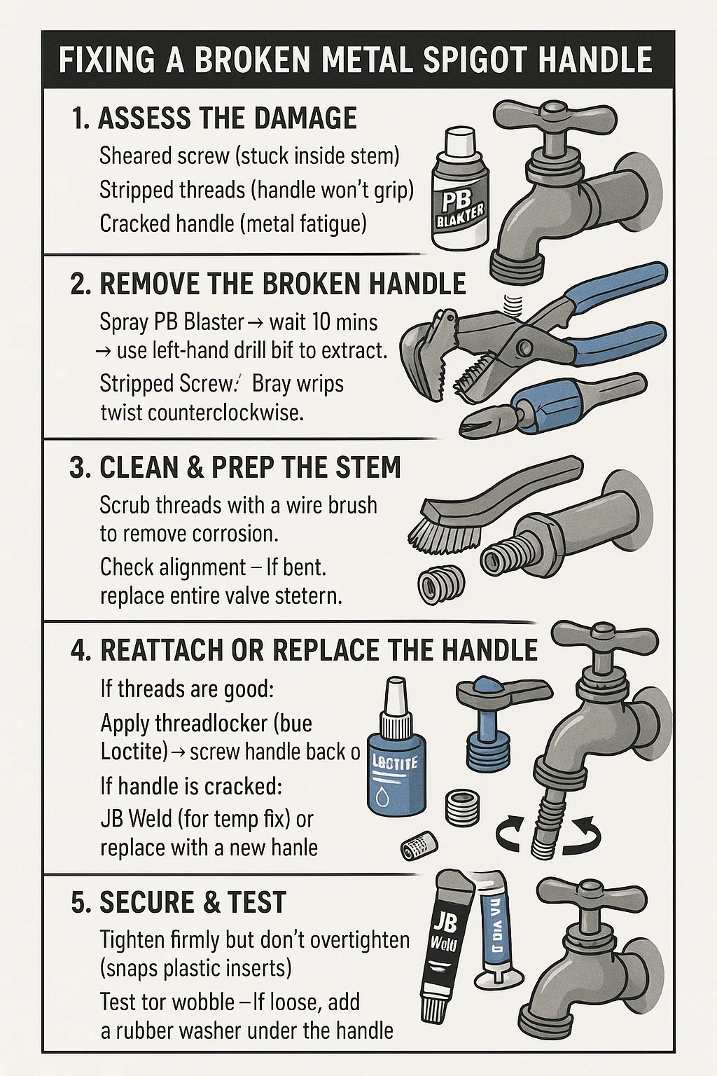 JB Weld (برای رفع دما) یا با یک دسته جدید جایگزین کنید.